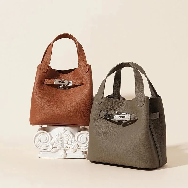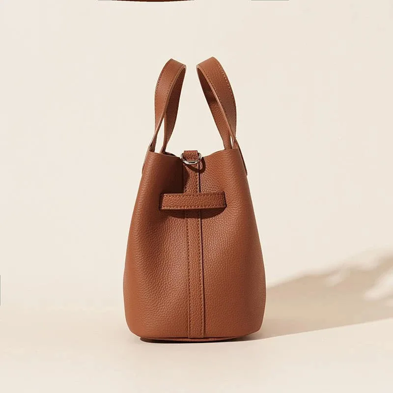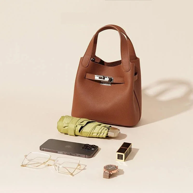 2026 New High-End Light Luxury Women Genuine Leather Basket Bucket Bag Ladies' Luxury Waterproof Shoulder Bag Handbag